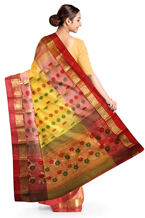 Pradip Fabrics Ethnic Women's Tant Silk Dark Yellow Color Baluchuri Saree