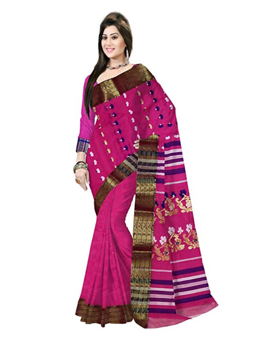 Pradip Fabrics Ethnic Women's Tant Cotton Pink Color Saree