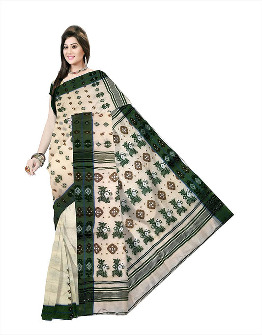 Pradip Fabrics Ethnic Women's Cotton Tant Baluchari Crcam Color Saree
