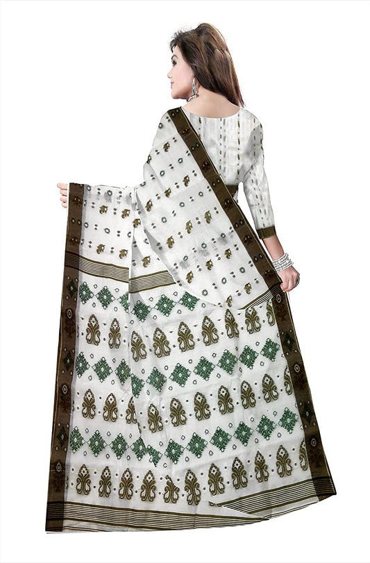 Pradip Fabrics Ethnic Women's Cotton Tant Baluchari White Color Saree
