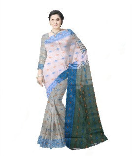 Pradip Fabrics presents you with the best quality Tant Khadi cotton sarees for girls and women. Buti's design in White & Green color makes it most attractive. The pallu has full Buti work and beautiful designer work. Also, the border has a beautiful design.Perfect for day wear, festivals, or gatherings, it offers comfort and style. Popular nationwide, it's designed to make you feel beautiful and happy.